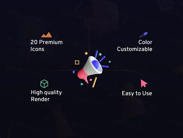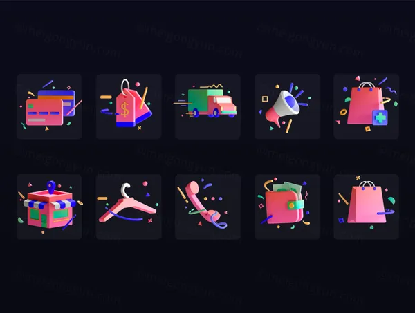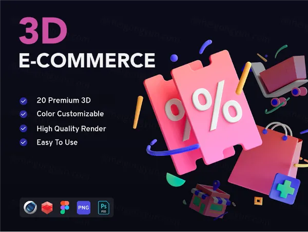 图穷联素材库 » 高质量三维渲染优惠券喇叭购物车电商主题卡通图标素材合辑 3D E-Commerce Pack