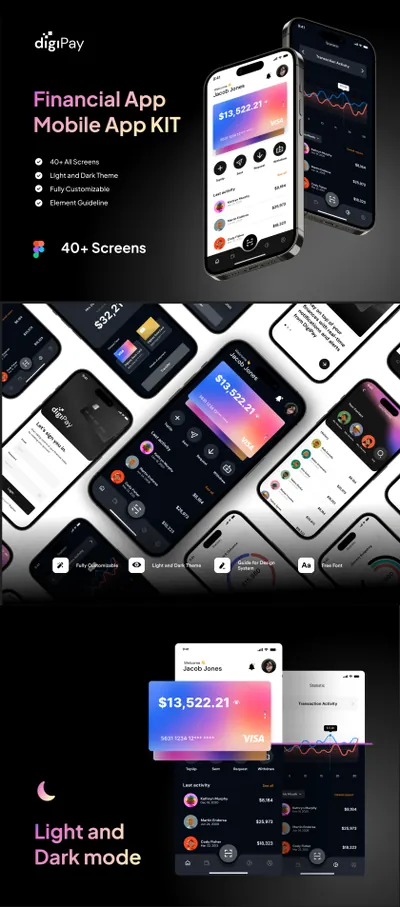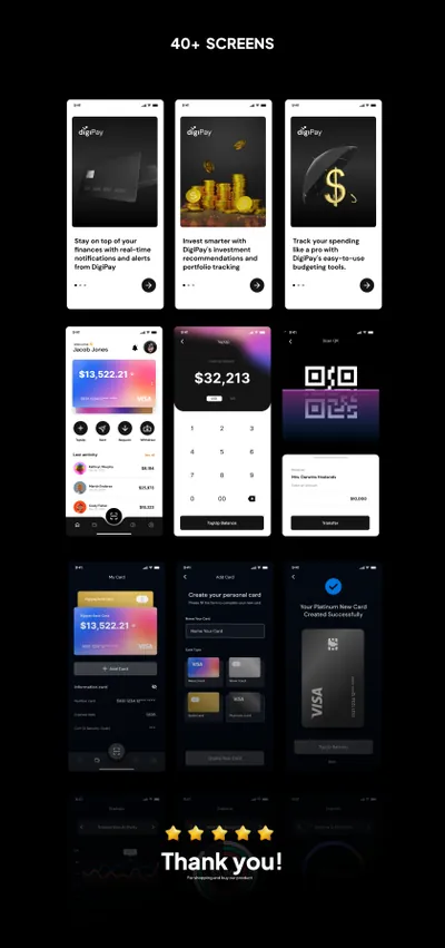 在线支付移动银行金融科技移动界面UI素材 digiPay Financial Technology App UI KIT