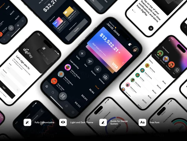 图穷联素材库 » 在线支付移动银行金融科技移动界面UI素材 digiPay Financial Technology App UI KIT