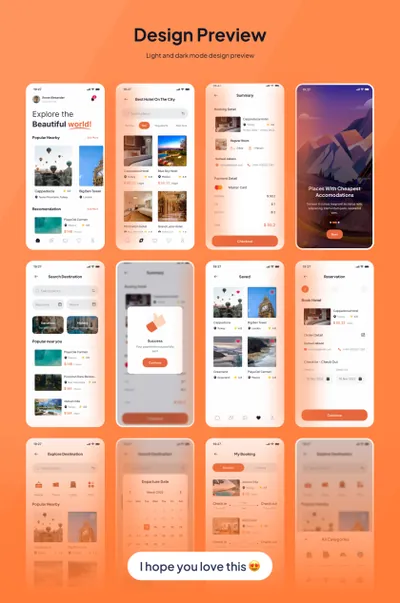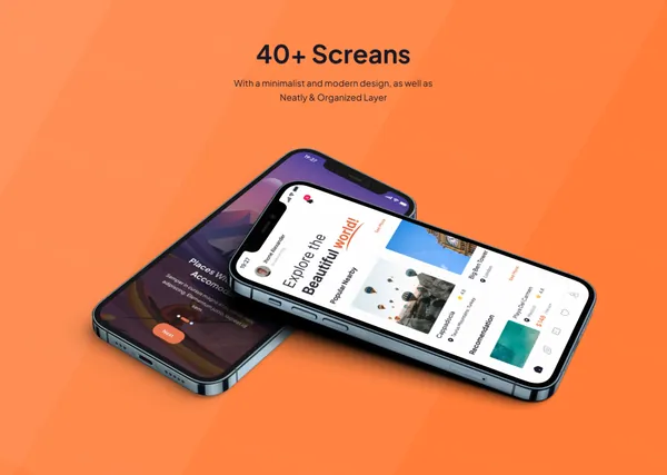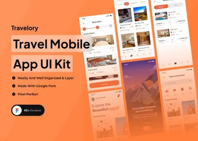 Travelory 一个极简主义设计的 UI 套件,适用于具有 40 多个屏幕的旅行移动应用程序。