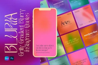 潮流迷幻模糊渐变颗粒感纹理媒体营销海报模板素材 BLURIA Gradient Quotes Instagram