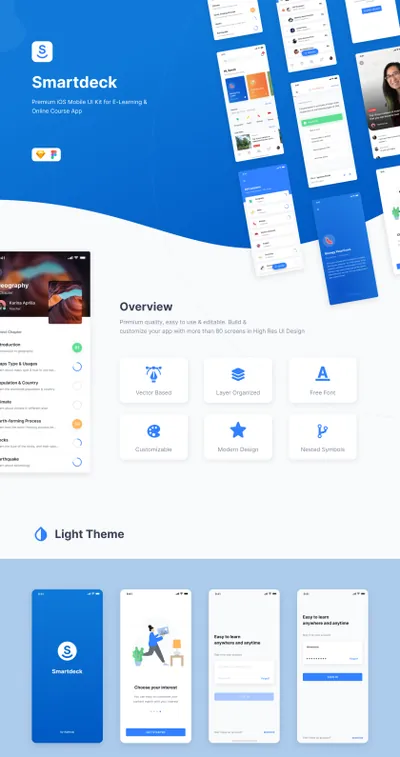 认识 Smartdeck,这是一个用于移动电子学习的 UI 工具包,可帮助学生完成学习过程。此 UI 套件专为任何学习/课程/研究应用程序而设计。