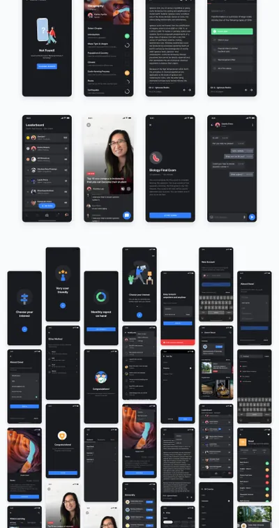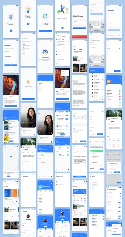 这个移动电子学习 UI 工具包非常易于使用,完全可定制,并且可以随时进行开发。专为帮助您使用提供的文本和颜色样式加快设计过程和应用程序开发而设计。