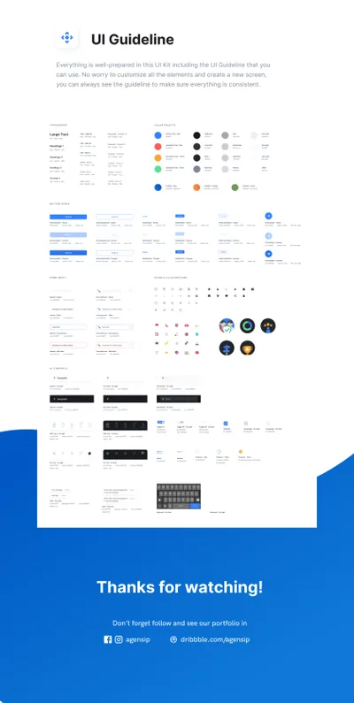 此 UI 套件中的一切都已准备就绪,包括您可以使用的 UI 指南。不用担心自定义所有元素和创建新屏幕,您始终可以看到指南以确保一切一致。