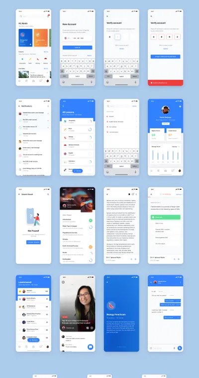 在线培训网校网课移动学习APP设计UI界面素材 Student Course E-Learning App UI Kit