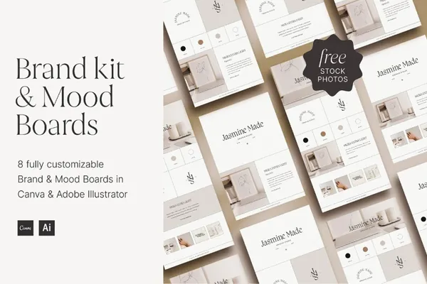 使用这些适用于 Canva 和 Adobe Illustrator 的完全可编辑的品牌板和情绪板模板来改变您的品牌。