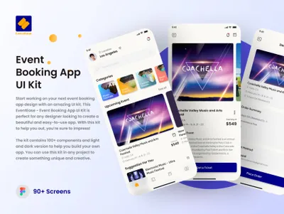 该套件拥有 90 多个漂亮的明暗主题屏幕和 100 多个可定制组件,是任何想要创建视觉效果惊人且用户友好的活动预订应用程序的设计师的完美工具。