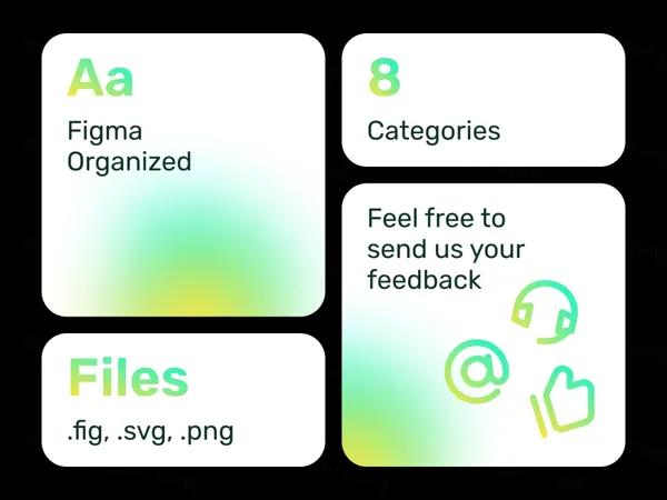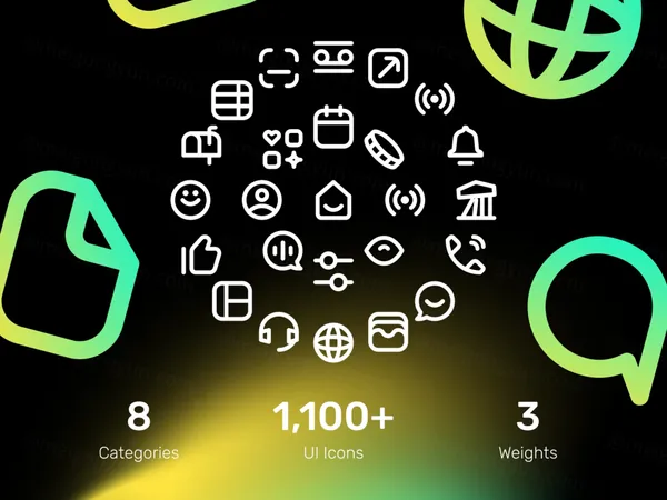 7 个类别中 1100 多个可自定义的基于笔画的矢量图标