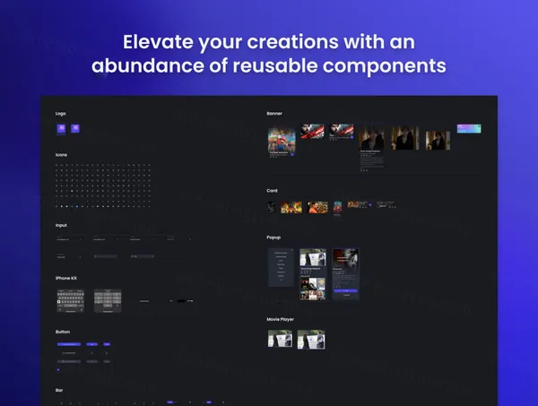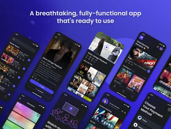 该套件拥有超过 46 个漂亮的屏幕和 100 多个可自定义的组件,是任何想要创建视觉效果惊人且用户友好的电影流媒体应用程序的设计师的完美工具。