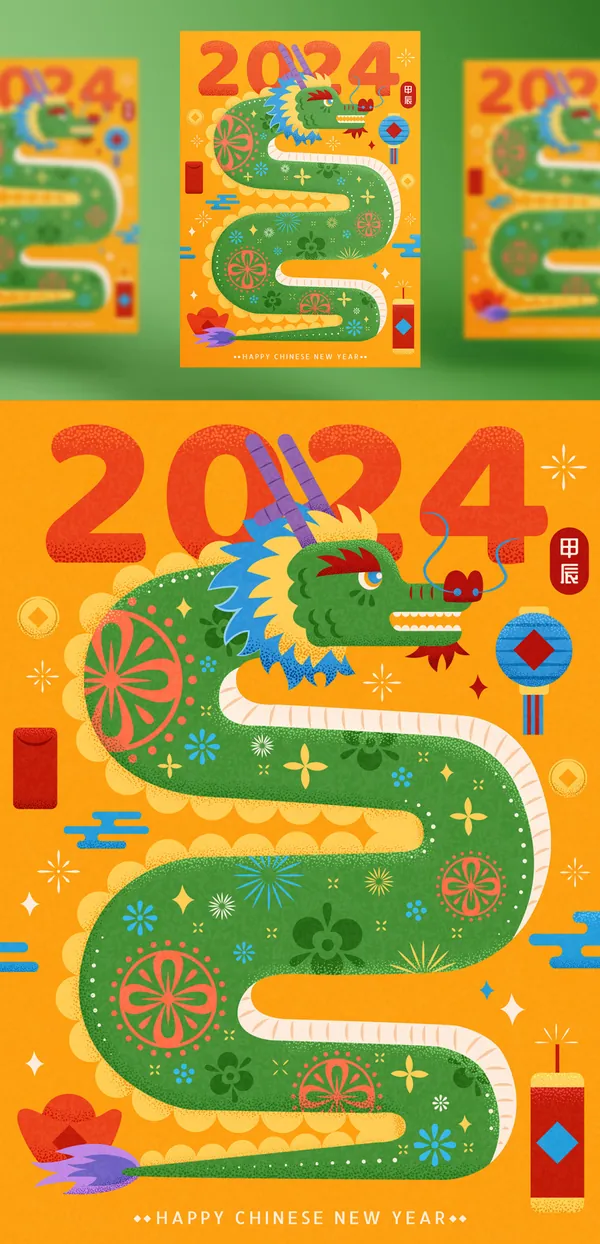 图穷联素材库 » 龙年中国传统春节新年快乐年画海报EPS矢量模板素材-3