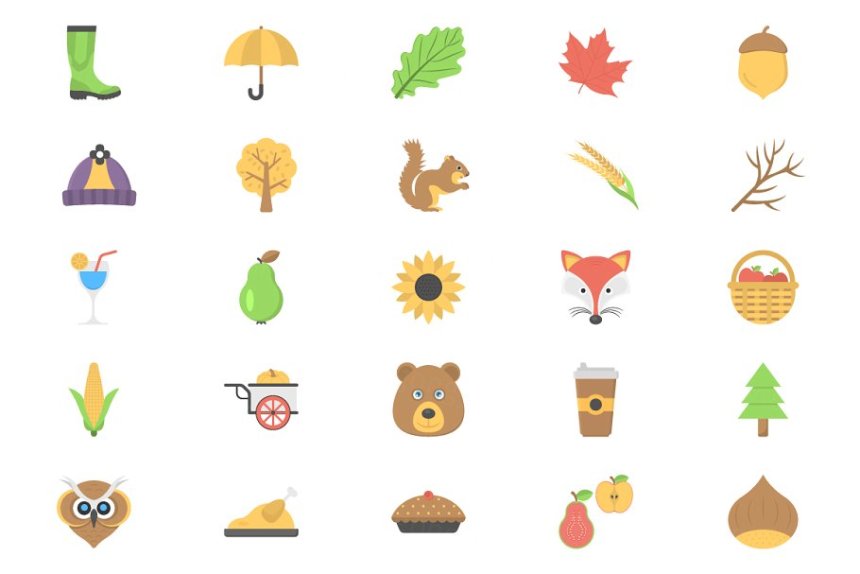 图穷联素材库 » 秋季扁平化水果图标素材 50 Flat Autumn Icons