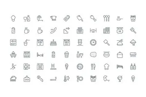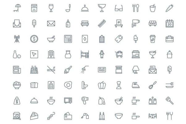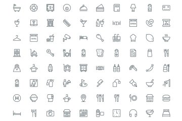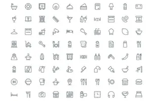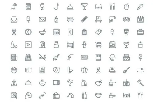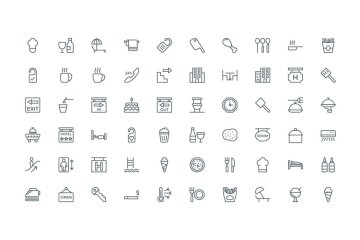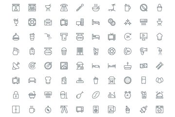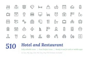 图穷联素材库 » 酒店和餐厅的图标素材Hotel and Restaurant Line Icon
