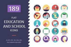 图穷联素材库 » 扁平化教育图标素材 189 Flat Education Icons