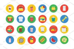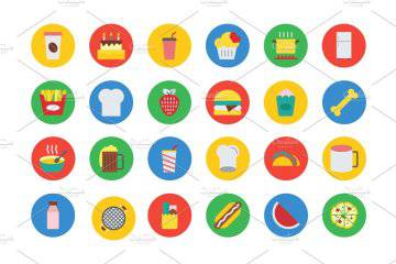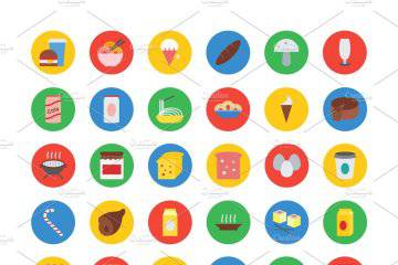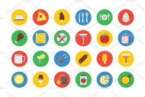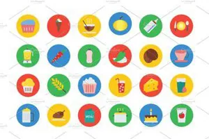 图穷联素材库 » 扁平化食物图标 300 Food Vector Icons