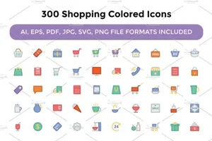 图穷联素材库 » 300个购物彩色图标素材 300 Shopping Colored Icons