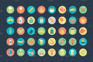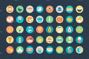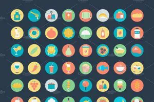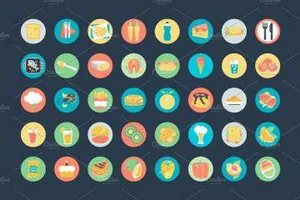 图穷联素材库 » 200个扁平化食物矢量图标素材 200 Flat Food Vector Ico