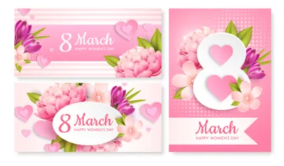 图穷联素材库 » 9套三八妇女节精致玫瑰花蕾花卉粉色背景横幅海报EPS矢量设计模板素材