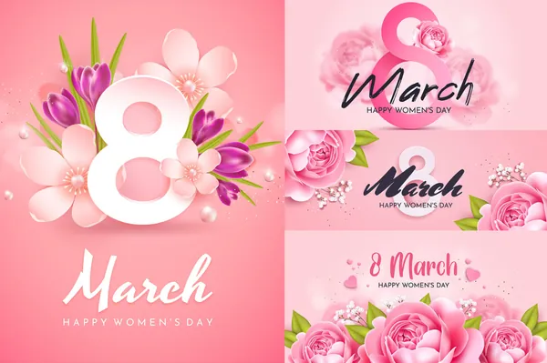 9套三八妇女节精致玫瑰花蕾花卉粉色背景横幅海报EPS矢量设计模板素材