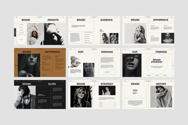 欧美包豪斯创意极简主义女性时尚品牌指南手册模板素材 HUGS | Brand Strategy
