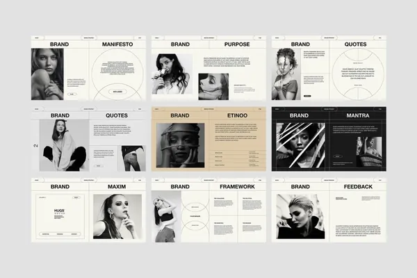 图穷联素材库 » 欧美包豪斯创意极简主义女性时尚品牌指南手册模板素材 HUGS | Brand Strategy