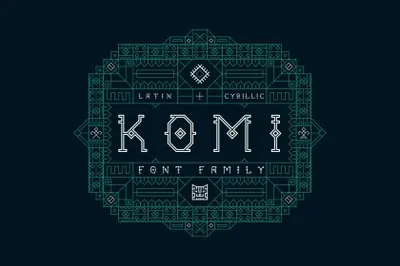 KOMI 轮廓几何字体集合与拉丁和西里尔字母。