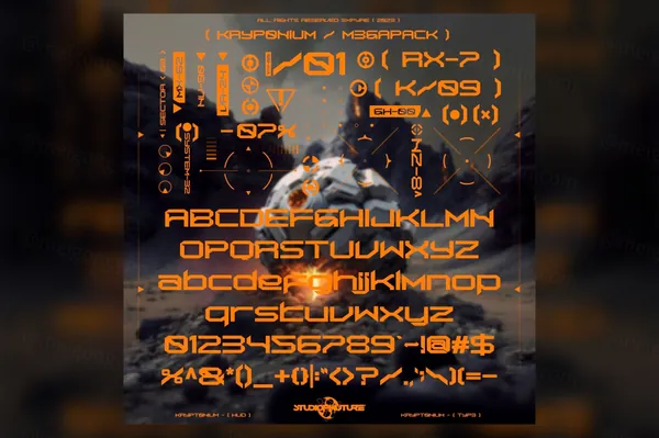图穷联素材库 » 潮流赛博朋克科幻工业机能几何抽象科技品牌设计英文字体 KRYPT0NIUM - M3GAPACK