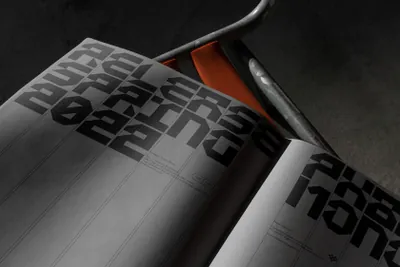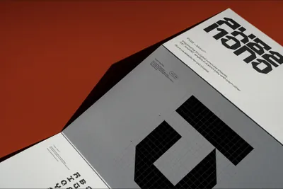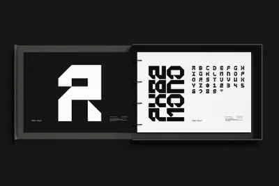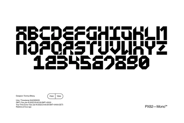 PX82 - Mono 灵感源自野兽派混凝土形状。45度和90度角严格地相互配合。单一大写黑色显示字体可产生显着的影响。