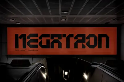 图穷联素材库 » 潮流赛博朋克野兽派混凝土工业机械科技品牌设计科幻海报英文装饰字体 PX82 - Mono