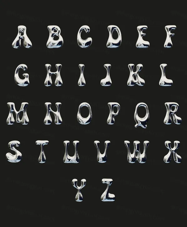 潮流3D金属镀铬铝箔金属字母符号形状PNG文字免抠图素材合辑 Chrome Font