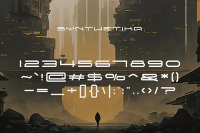 图穷联素材库 » 复古未来派赛博机能科幻电影游戏海报设计英文字体 Synthetika - Futuristic Typeface