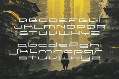 这种字体以几何形状和锐角的独特融合为特色,赋予其大胆而有力的外观。其尖角和简洁的线条营造出精确和现代感,使其成为需要未来主义和尖端外观的项目的理想选择。