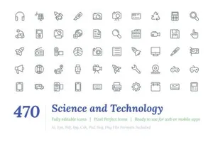 图穷联素材库 » 科技线性图标素材 470 Science and Technology Line