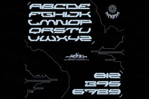图穷联素材库 » 复古未来派赛博朋克街头潮牌科幻机能工业风几何英文装饰字体 3XPYRE - DARKMACHINA-X