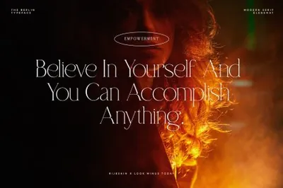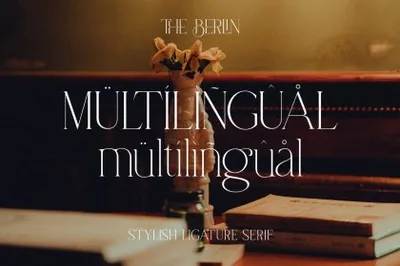 THE BERLIN - 一种现代衬线字体,将为任何设计项目增添一丝精致感。凭借其流畅的线条和现代的设计,The Berlin 是任何想要在设计中创造现代、时尚外观的人的完美字体。