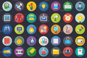 图穷联素材库 » 平面学校和教育图标大全 200 Flat School and Educatio
