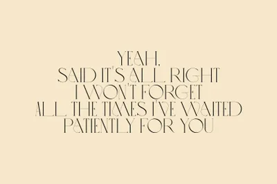 Love 是 Jeremy Schneider 于 2018 年设计的一款全大写显示字体,每个字母至少有两种样式。有些人甚至有更慷慨的候补选择。该字体的灵感来自美国迷幻摇滚乐队 Love,特别是他们 1967 年精彩的专辑 Forever Changes。由于夸张的反形式与细茎搭配,它的字母提供了美丽的对比,创造了各种节奏,以某种方式保持了排版单词之间的平衡。Love 的直而有弹性的结构允许许多优雅的结扎。