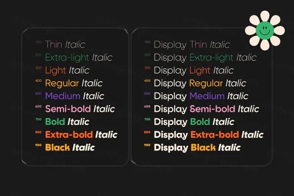 隆重推出 Goia,一种可变无衬线字体,有 2 种风格可供选择:第一种,非常易读,带有一丝原创性,非常适合正文;第二种“显示”,更具影响力,具有更自信的原创性。两种样式都有可变或静态版本(9 个粗细 + 斜体),其中许多替代样式分为 3 个样式集。