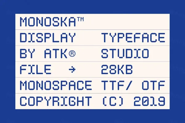 图穷联素材库 » 高质量科技工业快递面单机票编程编码编辑器显示器等宽英文字体素材 Monoska font