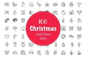 图穷联素材库 » 100个圣诞涂鸦图标 100 Christmas Doodle Icons