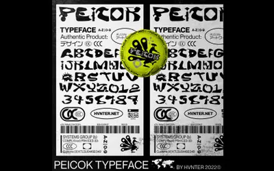 图穷联素材库 » 高质量酸性艺术逆反差反设计原始象形文字英文字体 Peicok Typeface