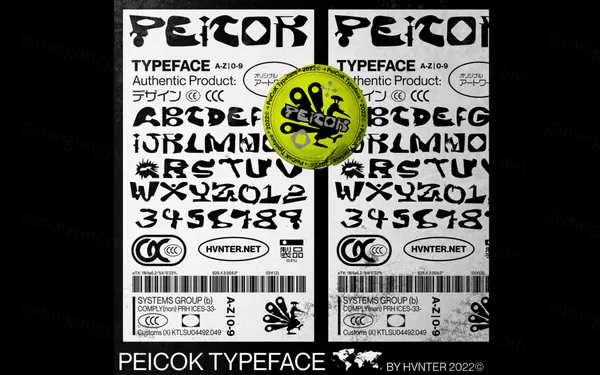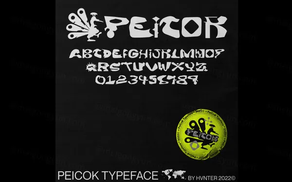 高质量酸性艺术逆反差反设计原始象形文字英文字体 Peicok Typeface