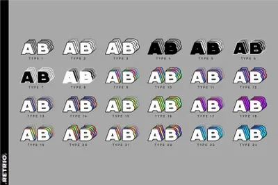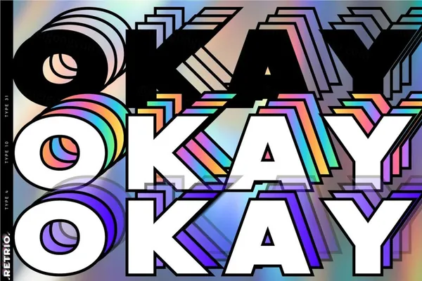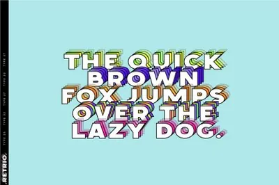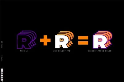 介绍Retrio。后面有回声的原始字形。就好像字母被移动了,但动力轨迹仍然存在。彩色、 渐变、透明或纯色 - 一个系列中的许多选项可满足任何任务和各种口味。字体将在插图中强调 20 世纪的风格。迪斯科、电子音乐、唱片、怀旧——这些是这个字体家族唤起的联想,这在设计中非常重要。同时,Retrio 字体并没有过时,它是在考虑到复古主题的现代趋势的情况下创建的。独特的系列,其中有彩色和经典的单色版本。集合中的许多字体提供了极大的通用性。非常适合广告设计、海报、标题和封面。
