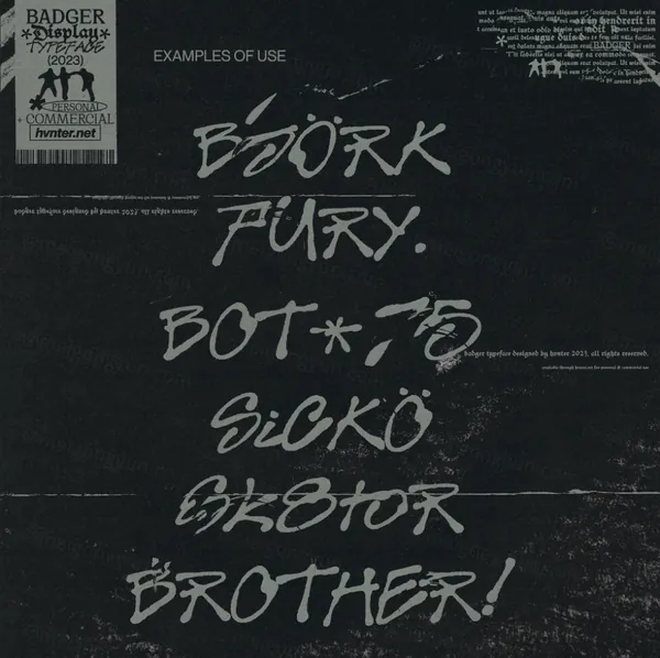 图穷联素材库 » 潮流酸性艺术逆反差反设计涂鸦手写英文字体 BADGER Typeface