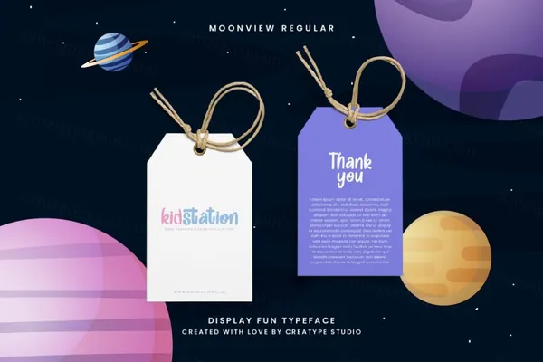 图穷联素材库 » 充满童趣稚嫩的儿童品牌设计包装海报排版手写英文字体 Moonview Display Children Fun