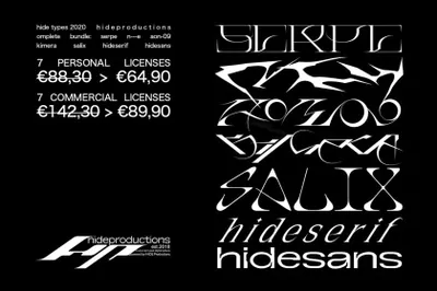 我们很高兴与您分享这个独家捆绑包:一次提供所有 HIDE Productions 字体。目前已更新到:HT14