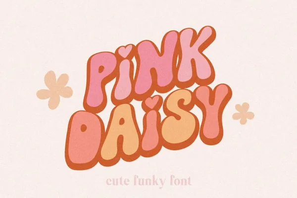 图穷联素材库 » 高质量波西米亚风时尚粉嫩可爱卡通设计装饰英文字体 Groovy Font Pink Daisy