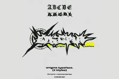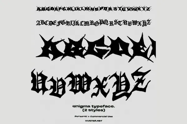 图穷联素材库 » 潮流酸性粗野艺术迷幻炸裂街头潮牌服饰粗糙边缘设计装饰英文哥特字体 Enigma Typeface