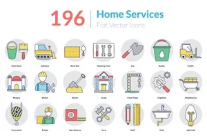 图穷联素材库 » 196个家居服务元素图标 196 Home Services Icons