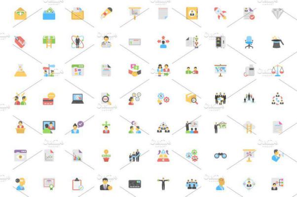 图穷联素材库 » 340个平面商业图标 340 Flat Business Icons