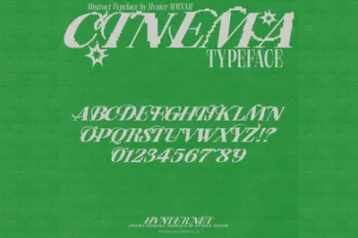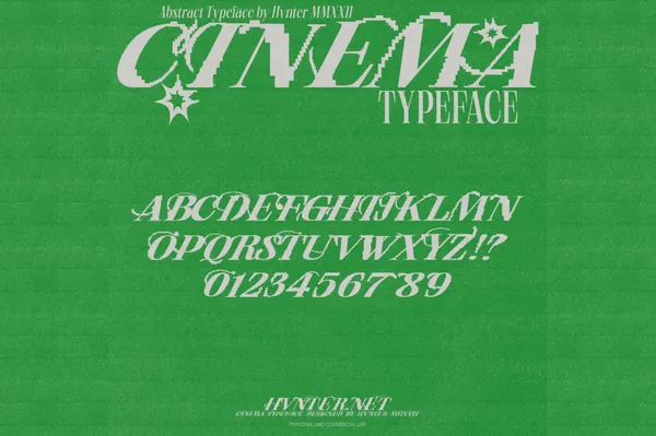 图穷联素材库 » 潮流复古做旧艺术干净像素混合风格电影游戏海报设计英文字体 Cinema Typeface